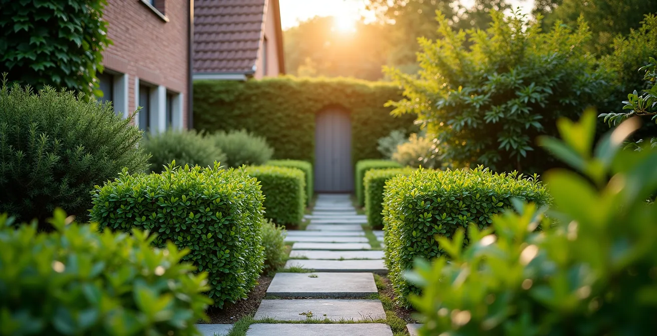 L’Ilex crenata est le sosie quasi parfait du buis, mais il apprécie peu les sols lourds et calcaires, fréquents en Hainaut ou en Brabant wallon. Le Lonicera nitida, plus vigoureux, s’accommode de presque tous les sols mais demandera des tailles plus fréquentes pour garder une forme stricte. L’if (Taxus baccata) est une excellente option, très résistante, mais sa croissance est plus lente et toutes ses parties sont toxiques, un point à considérer avec des enfants ou des animaux.