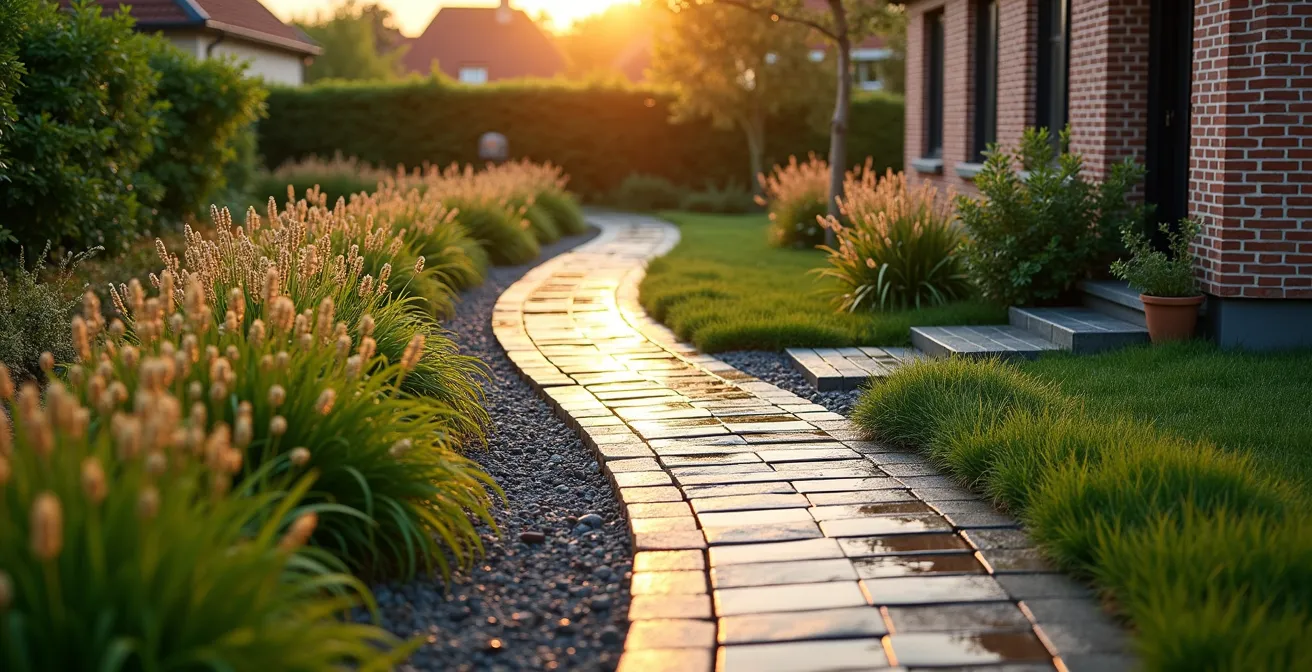 - Remplacer quelques dalles par des pavés à joints larges remplis de gravier ou de gazon.